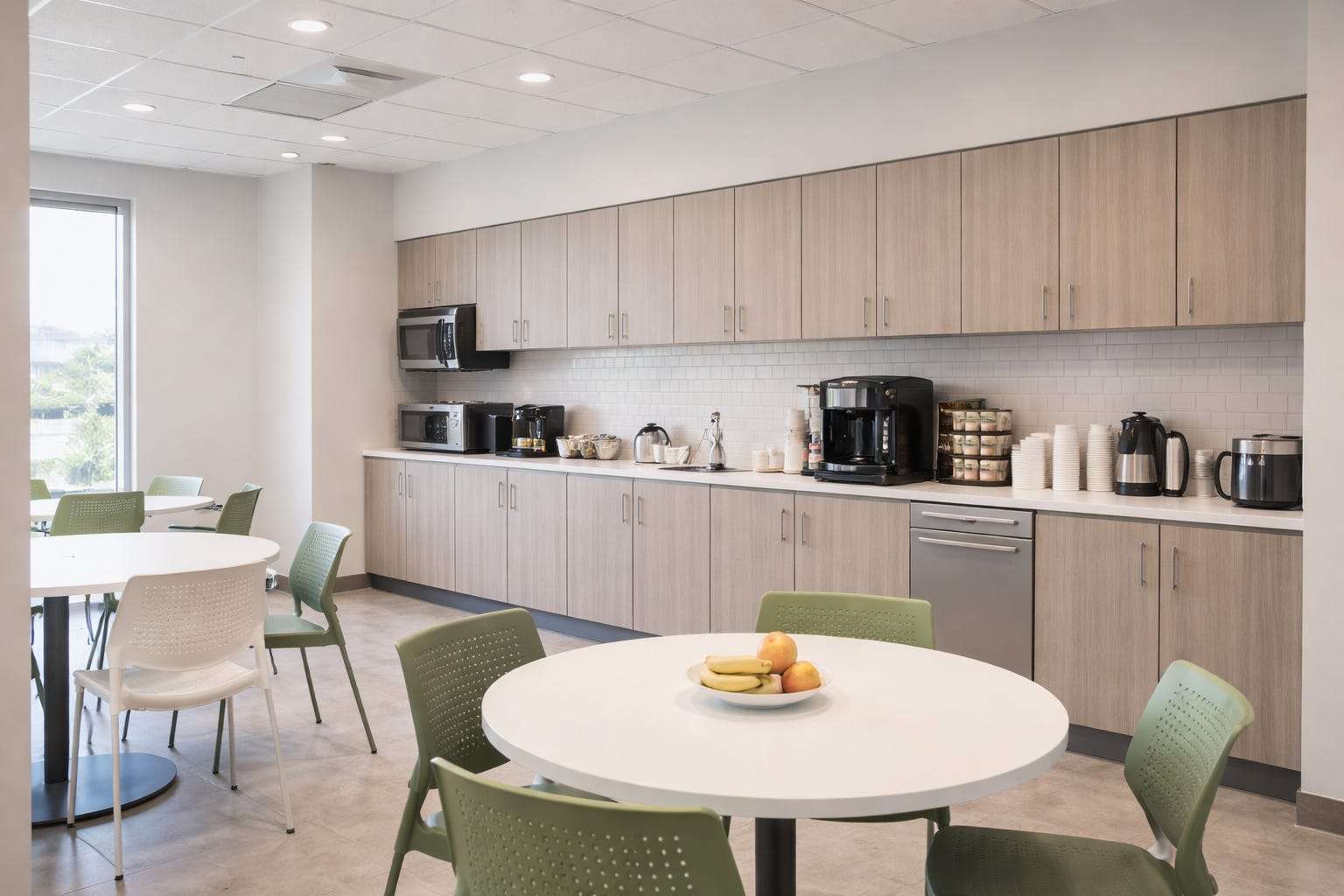 I wandered around for a bit, slightly lost, before finding the coffee station tucked inside the cafeteria area. I started digging through the cupboards looking for a coffee pod.