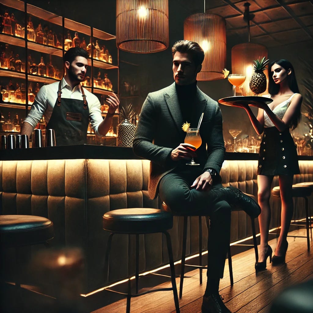After a lazy start at the hipster barâedible still tapering off, no approachesâI headed to a louder, dressier spot. The kind of place where women actually try. The energy was better. I found a seat in the middle of the bar, high traffic, front row view. No hunting. Just posted.