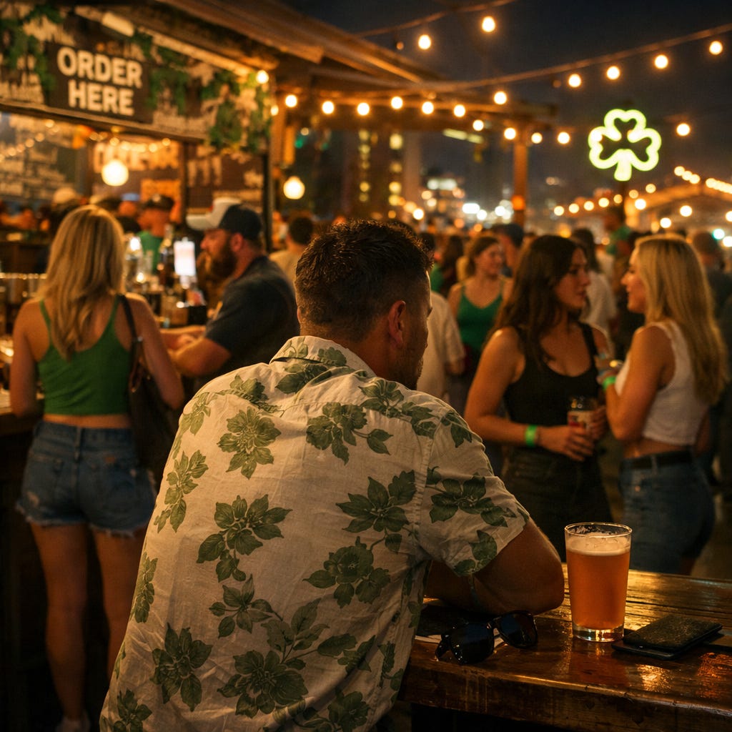 The first interaction came easily. A Southern blonde stepped up to order drinks for her group. I asked if the green outfit was for the holiday or the crawl.